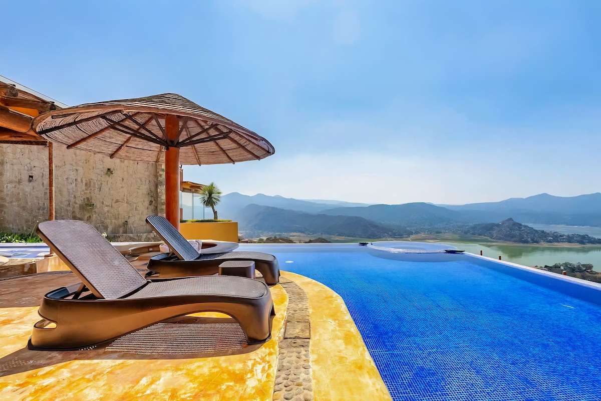 墨西哥风格的森林景观房,可欣赏湖景,带游泳池