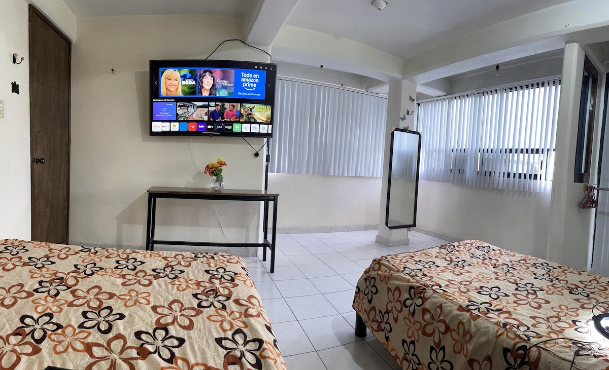 Estudio exclusivo en el centro de Amecameca de Juaréz, justo a 15 metros de la terminal de autobuses (Volcanes). Cuenta con baño equipado, habitación amplia, zona de TV y trabajo, entrada independiente, self check-in y luz automatizada. Disfruta de su fachada colonial única y un delicioso desayuno incluido. Ideal para descansar o trabajar con comodidad. ¡El único estudio con estas características en la ciudad!