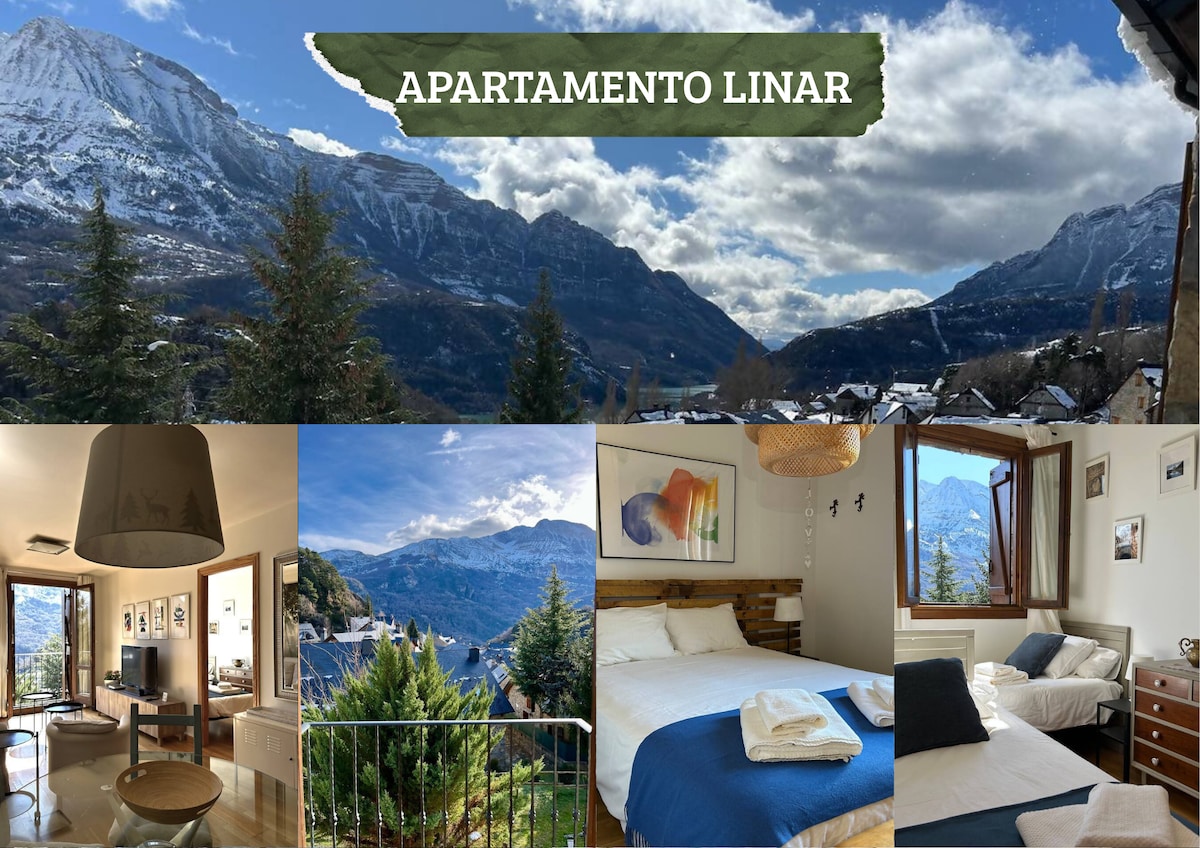 Enjoy the Pyrenees from this renovated apartment with a large balcony and valley views — perfect for families or groups. 3 bedrooms, fast WiFi, kitchen, and bright living room. Just 20 minutes from Formigal and Panticosa ski resorts, and close to Ordesa National Park. Flexible check-in. Ideal for skiing, hiking, or relaxing in style. 🏡 3 bedrooms – great for families or groups 🌄 Balcony with beautiful valley views 📶 Fast WiFi 🐾 Pet-friendly 🔥 Renovated and cozy apartment