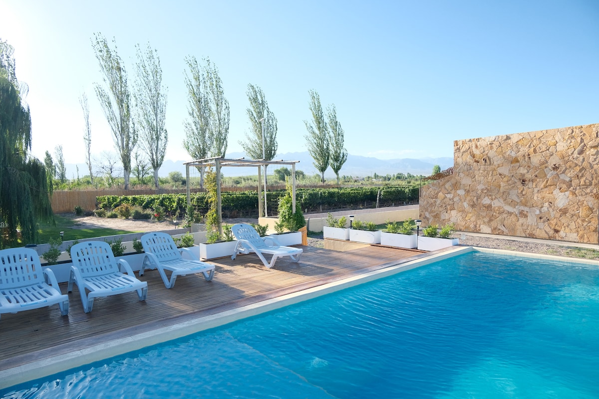 Discover everything that Rincon Del Malbec has to offer. From dining at the on-site restaurant Fuegos Aucano, to lounging by the pool or trying our Aucano wines within our "Cava" a traditional mud house built in 1884 that stores and keeps our wines at the right temperature. We have several cabins on site so if this one is booked for your chosen dates, check out my other listings.