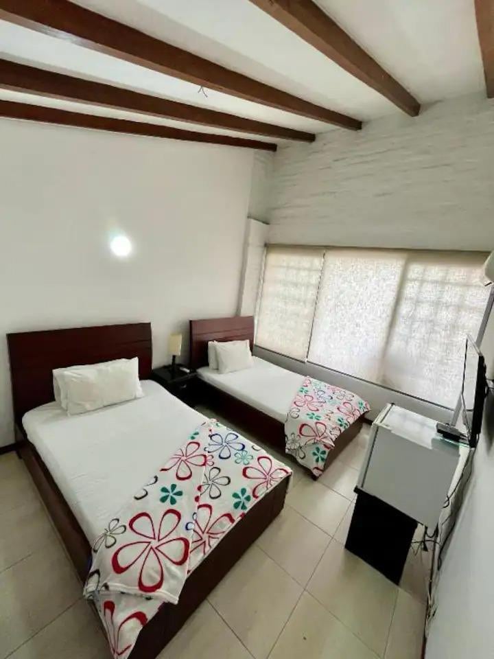 Hospédate en una habitación privada con cómoda cama doble, baño propio, aire acondicionado, TV, minibar y wifi rápido. La reserva incluye acceso a las zonas comunes: cocina equipada con cafetera, terraza y hamaca. Contamos con vigilancia 24/7 y restaurante en el hotel. No tenemos parqueadero, pero te recomendamos uno cercano (costo aparte). Ideal para viajes de trabajo o descanso en el norte de Cali.