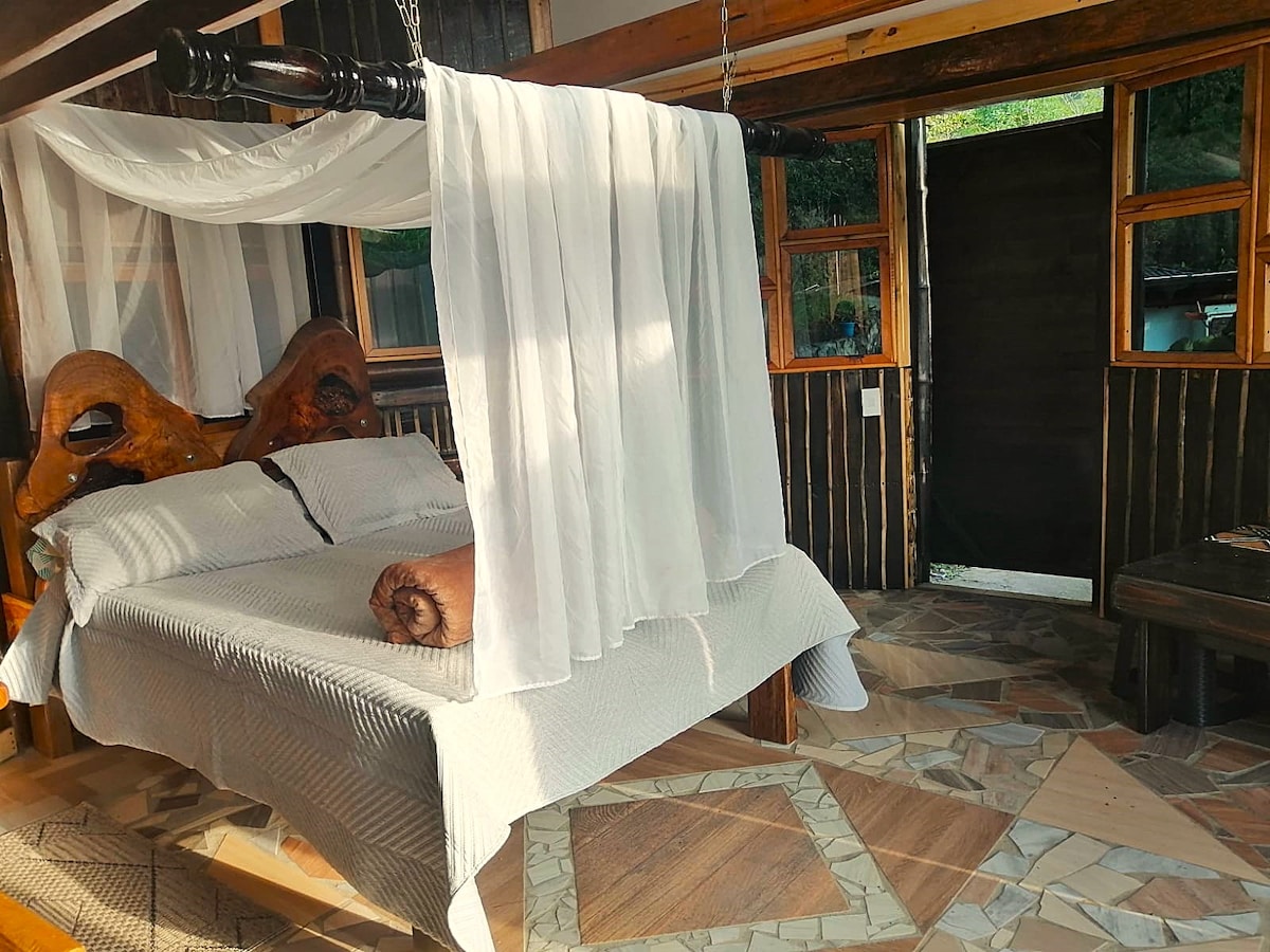 Esta cabaña en el eje cafetero es un rincón romántico que combina la magia de las montañas con la calidez de un hogar, el lugar perfecto. Ubicada a pocos minutos de los sitios mas turísticos. El interior te invita a vivir una experiencia única: madera cálida detalles rústicos y una vista desde la ventana que te hará sentir que el mundo es más bonito visto desde aquí. el canto de los pájaros y el aroma del café fresco te esperan en este lugar diseñado para historias de amor y sueños por cumplir.