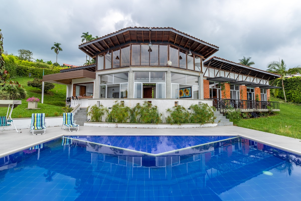Country House in Pereira, Sector Cerritos, Easy Access. You will enjoy sunny days, tranquility, connection with Nature, and beautiful sunsets. Overlooking a spectacular guadual. Located 15 minutes from the International Matecaña Airport, with an excellent location to places of interest in the Coffee Region; 5 minutes from the best food malls in the city, supermarkets. Perfect place to enjoy with the family. With heated Jacuzzi, BBQ area, wood oven for pizza. Campfire area. Pet Friendly.