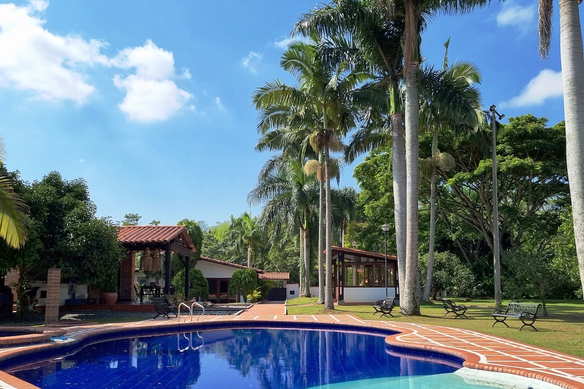 Discover tranquility in our new rural retreat near Armenia, immersed in the charm of the Coffee region of Colombia. If you are looking to get away from the hustle and bustle of the big cities, look no more. Your perfect getaway offers: 🛏️ King size bed in the Master room 🛁 4 full bathrooms 👨🍳Fully equipped kitchen 👙Relaxing heated jacuzzi 🃏Family room with games 💻 Office spaces with high speed internet 🌷Private community full of nature 🎢 Close to main attractions