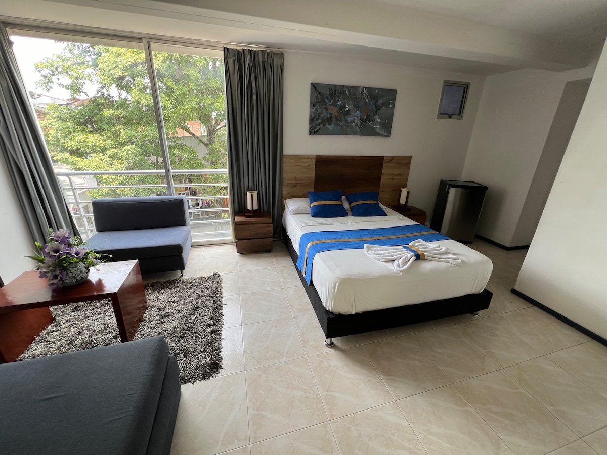 Welcome to our oasis in Cali. Don't miss this unique opportunity. Book now and make this wonderful hotel your home! Located in the exclusive Ciudad Jardín neighborhood, you can enjoy the pool, jacuzzi, or Turkish bath, and have fun in the TV and PlayStation rooms. Start your day with a delicious breakfast included in your stay and stay connected with free Wi-Fi. We have parking and a coworking space ideal for business travelers.