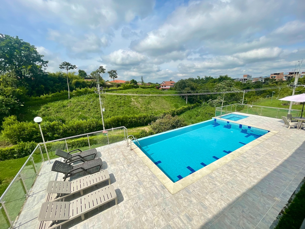 Discover tranquility in our new rural retreat near Armenia, immersed in the charm of the Coffee region of Colombia. If you are looking to get away from the hustle and bustle of the big cities, look no more. Your perfect getaway offers: 🛏️ King size bed in the Master room 🛁 4 full bathrooms 👨🍳Fully equipped kitchen 👙Relaxing heated jacuzzi 🃏Family room with games 💻 Office spaces with high speed internet 🌷Private community full of nature 🎢 Close to main attractions