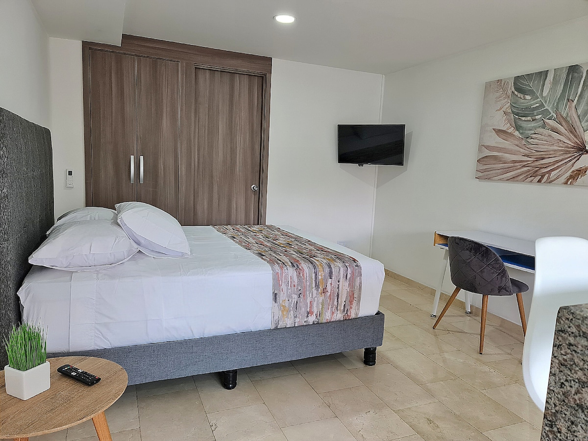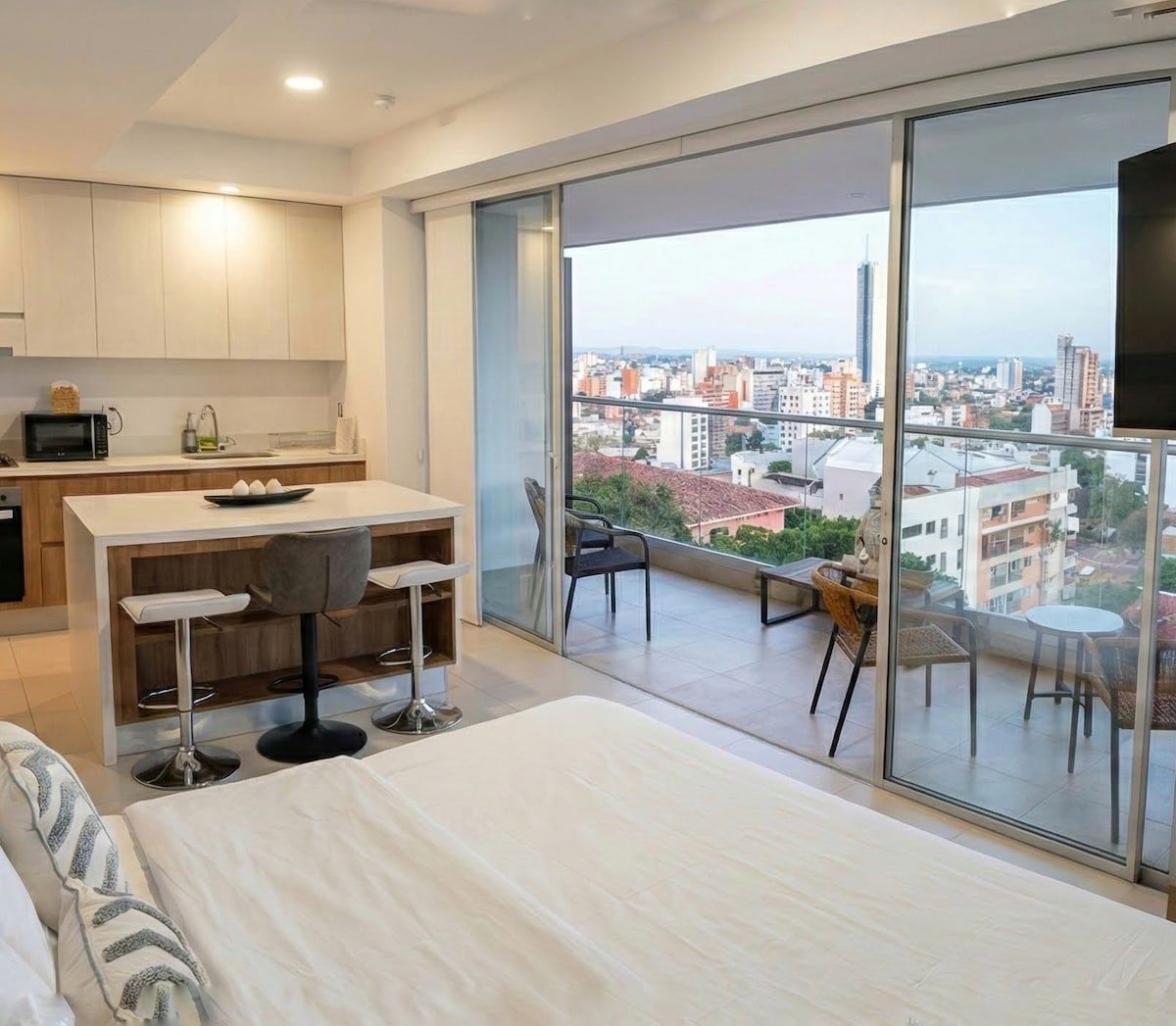 Luxury penthouse studio in Cali’s vibrant Granada district with stunning city views. Ideal for solo travelers or couples. Sleeps up to 2: queen bed, mid-size sofa bed (80x160 cm). Enjoy full kitchen, in-unit laundry, terrace, plus access to pool, gym, spa, coworking, and meeting rooms. Enhance your stay with salsa classes, eco-tours, whale-watching, and optional private chefs, drivers, and massage therapists—all curated just for you. RNT: 251456