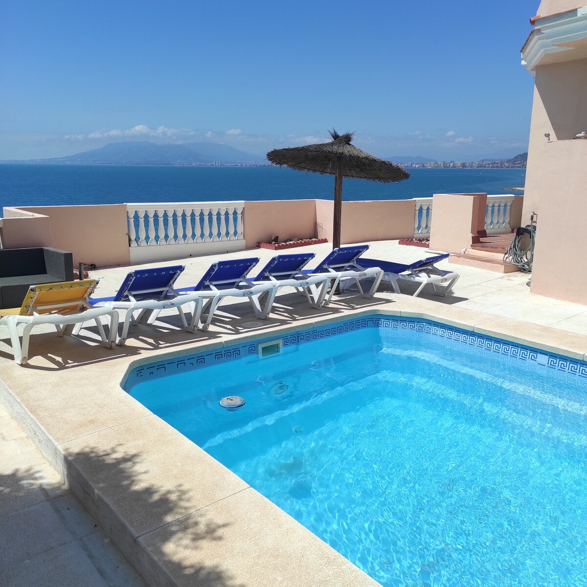 马贝拉独特。私人加热泳池。海景