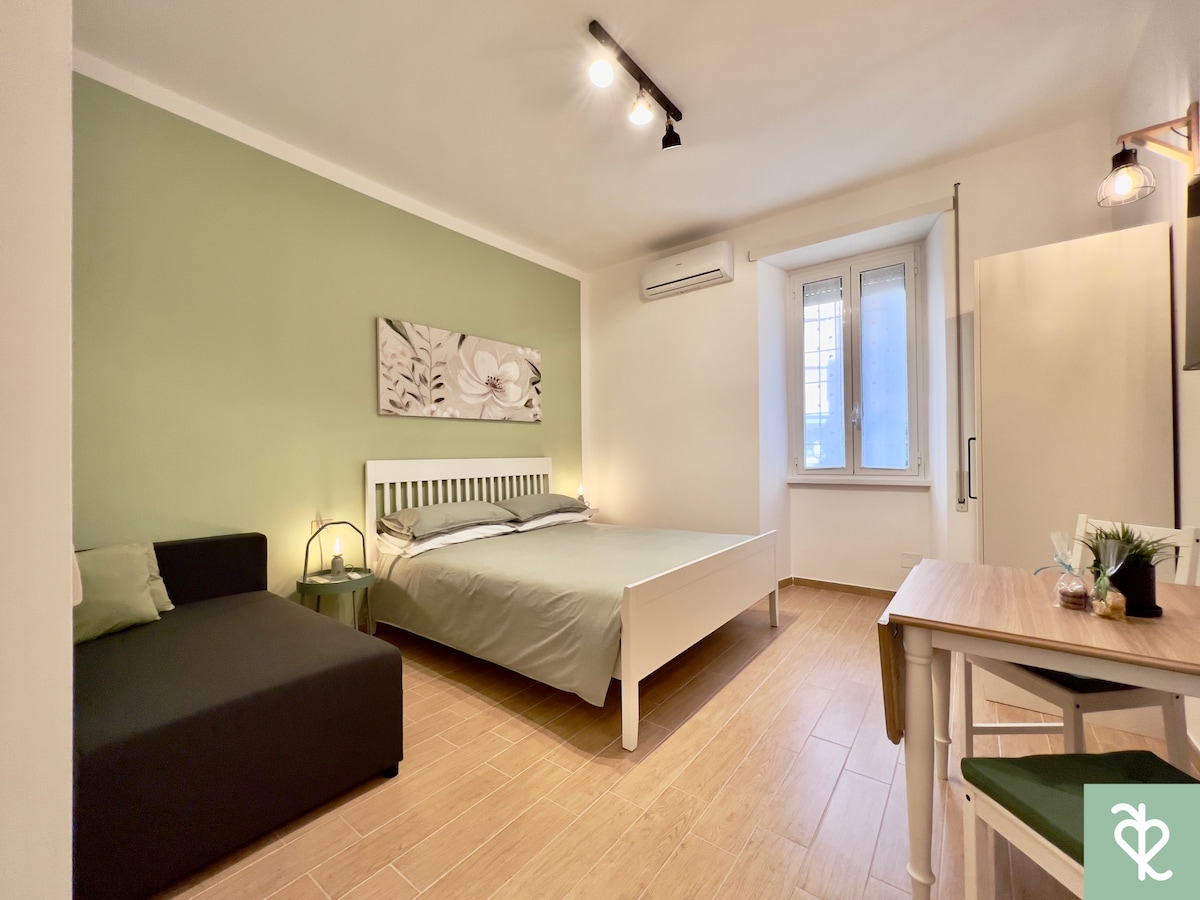 Ciao, sono Giulia e questo è il mio appartamento. È un monolocale nuovo e molto curato che si trova in una zona di Roma dove non ti sembrerà di stare in città! Circondato da verde e da parchi con piccole gemme nascoste, ma comunque a pochi metri dalla vivacità della movida romana. Un ampio terrazzo per stare all’aria aperta e spazi interni ben organizzati che ti faranno sentire a casa. Pet friendly e a circa 5km dal centro , ben collegato con bus e metro, zona fornita di ogni comfort