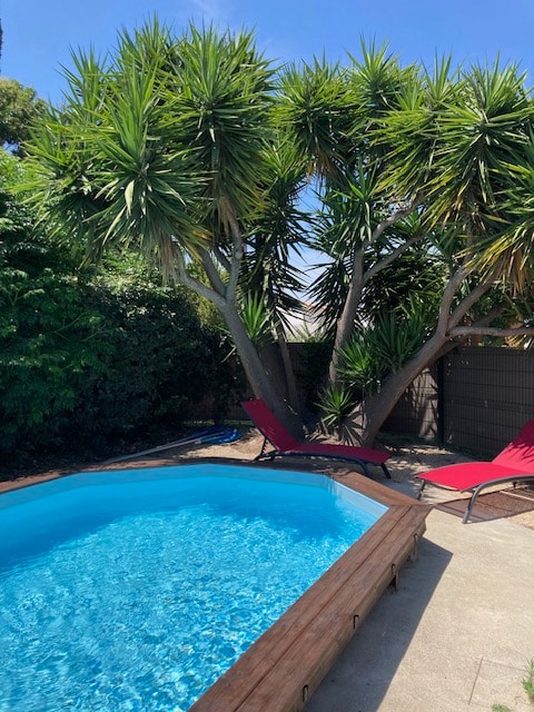 A little corner of paradise 150 meters from the sea, wooded grounds, birdsong. You will enjoy the entire floor of the private accommodation just for you!!!! with two bedrooms, a bathroom as well as a fully equipped summer kitchen, solarium with jacuzzi and a living room with fireplace on the ground floor and a swimming pool of 8 m by 4 salt treatment!! Large terrace. On site you can eat, possibility of agreeing on a meal prepared by myself or wood-fired pizza. See you soon ☺️