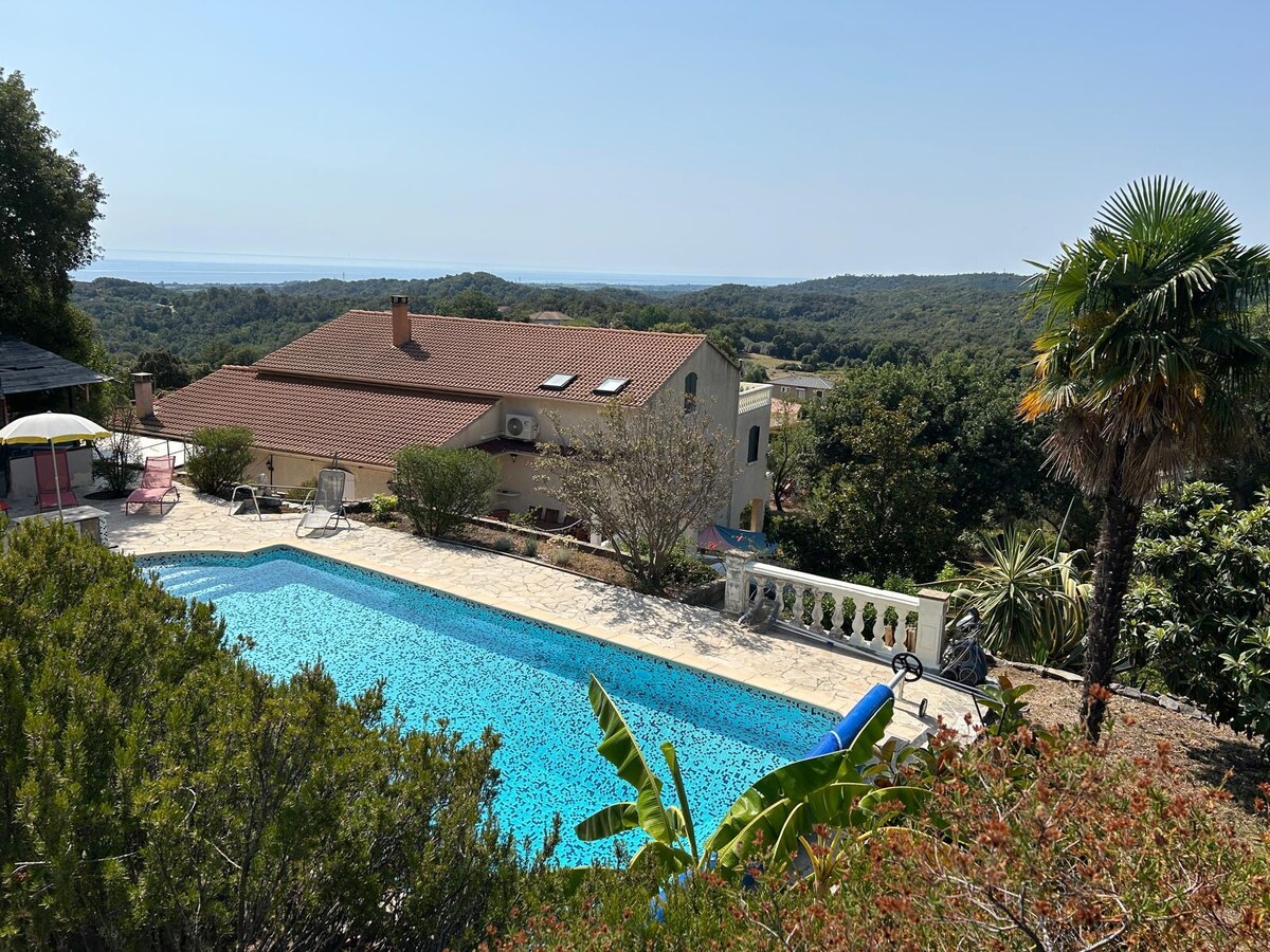 Cette maison de 120 m² associe luxe et confort. Le salon lumineux offre une vue spectaculaire, la cuisine moderne est équipée. Deux chambres spacieuses offrent un havre de paix, tandis que la salle de bain principale est un sanctuaire de détente. À l'extérieur, une terrasse de 200m² invite à la détente, surplombant une piscine chauffée et une vue imprenable sur la mer. Située à quelques minutes du village et de la plage, elle offre un équilibre parfait entre intimité et commodité.
