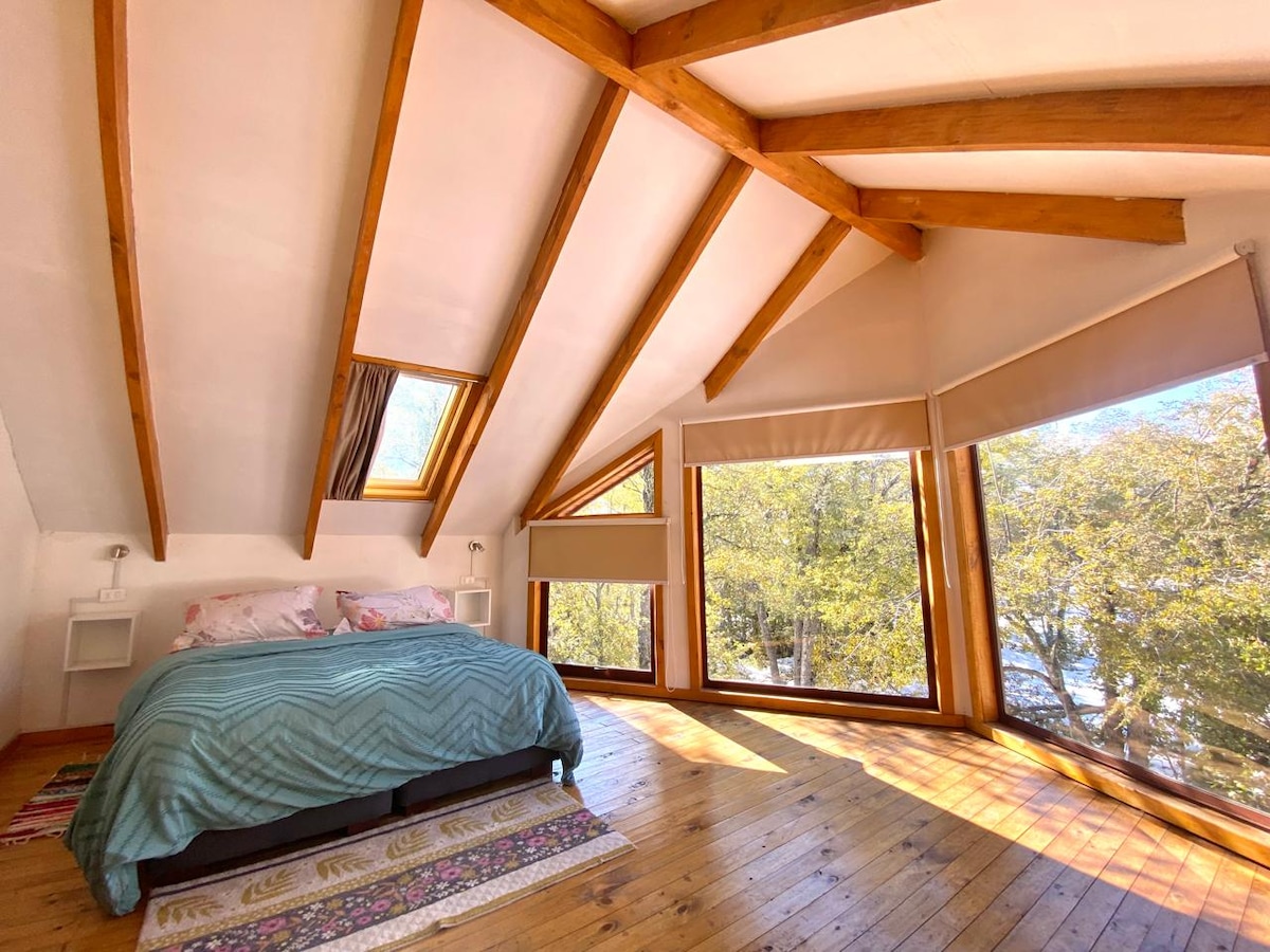 Amplia casa de montaña para 15-16 personas, 3 camas de dos plazas y 9 camas individuales. Ubicada en una pequeña ladera en el corazón del Valle Shangrila. Inmersa en roca volcánica, bosque nativo, flora y fauna local, con vista panorámica de los volcanes y montañas aledaños. Patio amplio y piscina compartida. Estamos al interior del Valle Shangrila, a 1.8km del downtown Las Trancas, a 10km del centro de Ski, Bike Park y Termas de Chillán.