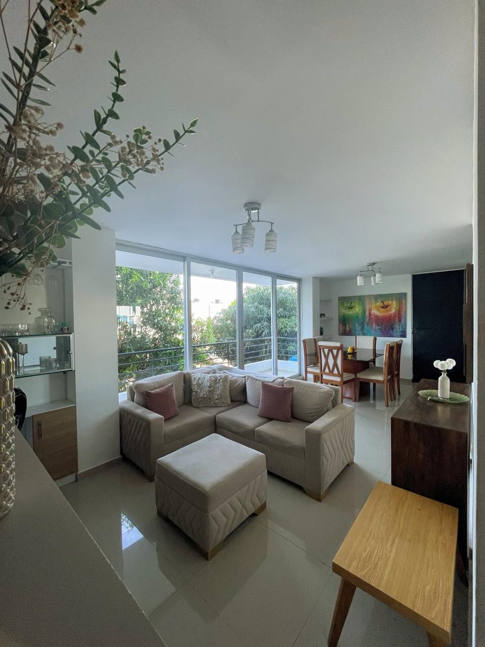Excelente ubicación, un espacio ideal para disfrutar, una buena ambientación, aire acondicionado, contamos con una decoración espectacular, te vas a sentir como en casa. Cuenta con todos los utensilios básicos, elegante y sobrio excelente vista desde el balcón directo a la serranía, un espacio tranquilo y seguro, contamos con vigilancia las 24 horas del día porteria y servicio de parqueadero