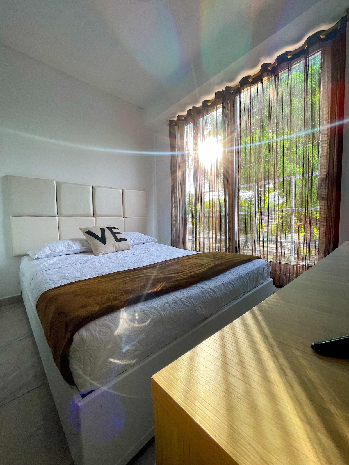 súper apartamento cerca de todo amoblado espectacular disfruta tu estancia de momentos únicos. ubicada en la urbanización Don Miguel. a 10 minutos del parque de la provincia. centro comercial guatapurí. almacenes de cadena olímpica macro. de uno. ara y demás. río Hurtado y monumentos a 10 minutos