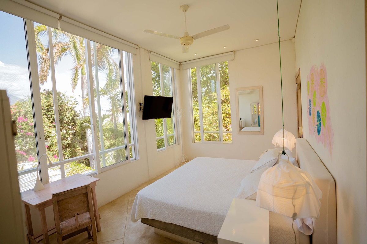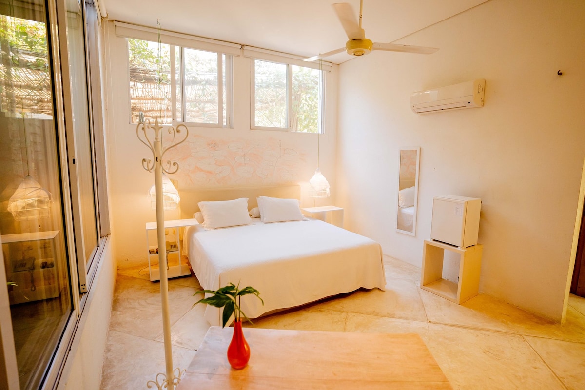 Habitación privadas con 1 cama doble (1.4m ancho), aire acondicionado y baño interno. Espacios sencillos y funcionales, sin ventanas, ideales para descansar cómodamente después de un día de actividades. Servicios incluidos ✔ Aire acondicionado ✔ Cama doble ✔ Televisión ✔ Wifi con buena señal ✔ Baño privado ✔ Espacio práctico para una estadía tranquila Ideal para: Viajeros que buscan un alojamiento básico, cómodo y bien ubicado, sin lujos.