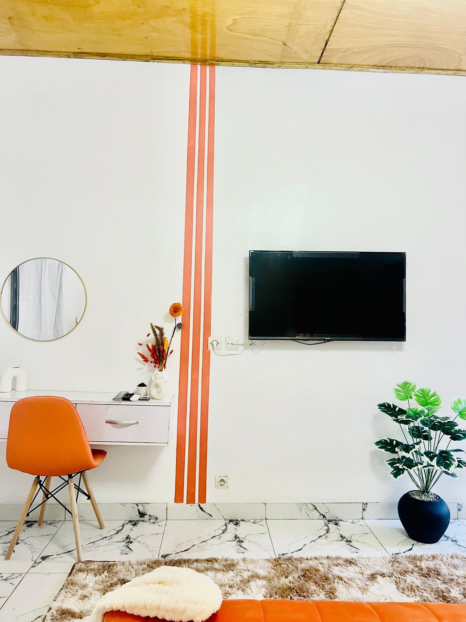 Situé dans un immeuble calme et sécurisé. Il est à la décoration moderne comprenant:un espace nuit avec un lit, un placard, un Séjour avec un canapé, TV smart,un accès internet haut débit, un balcon vous offrant la possibilité d'y travailler,une cuisine équipée, une salle d'eau avec douche à l'italienne.