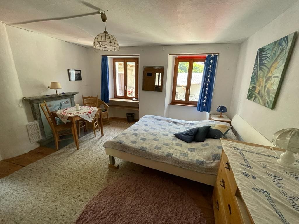 Apartment on the ground floor suitable for 2 adults + 1 extra guest. Spacious and bright, comfortable and cosy furnishings. Beautiful view of the mountains and the landscape. Possibility to rent the apartment above (Casa Lele - Sole). Big dining terrace in shared use. Bus stops “Rovana” (n.331) 180m; “Cevio Centro” (n.315) 650m. Supermarket, Kiosk, Restaurants ca. 1km. 27km from Locarno. Bosco Gurin ski area 16km. Wonderful clear water baths, hiking paths and waterfalls in the surroundings.
