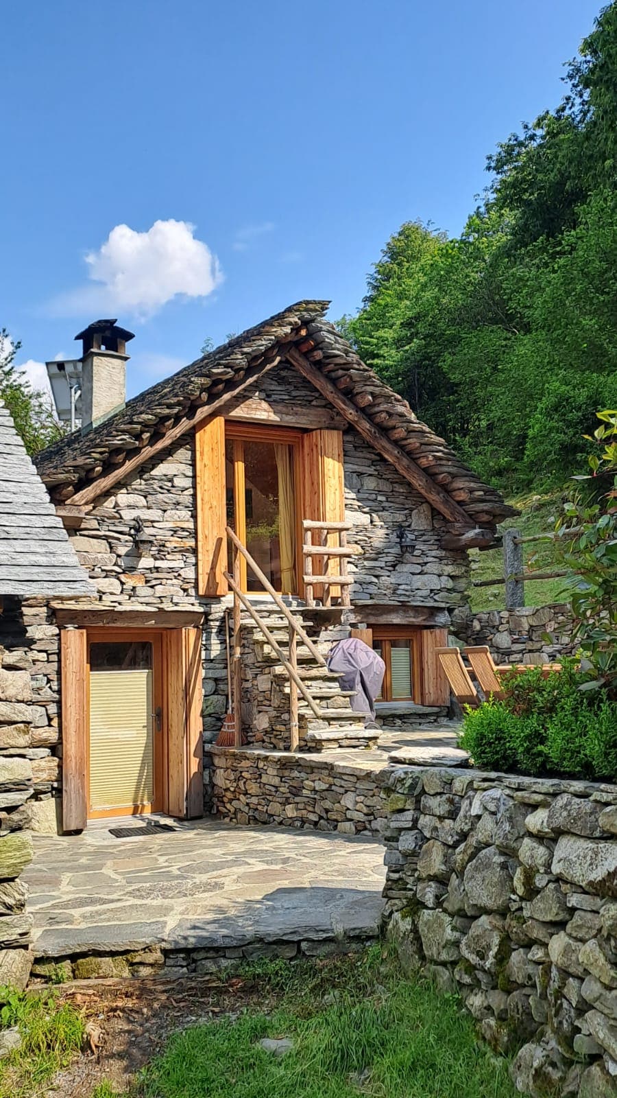 Moderno, confortevole, fuori dal caos delle città. In cima alla Vallemaggia, una valle incontaminata e naturale. Questo rustico è stato riattato rispettando i materiali naturali , dando un tocco speciale e originale. La vista sull'intera valle e le montagne sovrastanti vi colpiranno per la loro bellezza. Un paradiso di benessere naturale vi attende. La quiete di questo posticino intimo e tranquillo vi regalerà ricordi indimenticabili. Irrinunciabile il cielo stellato!