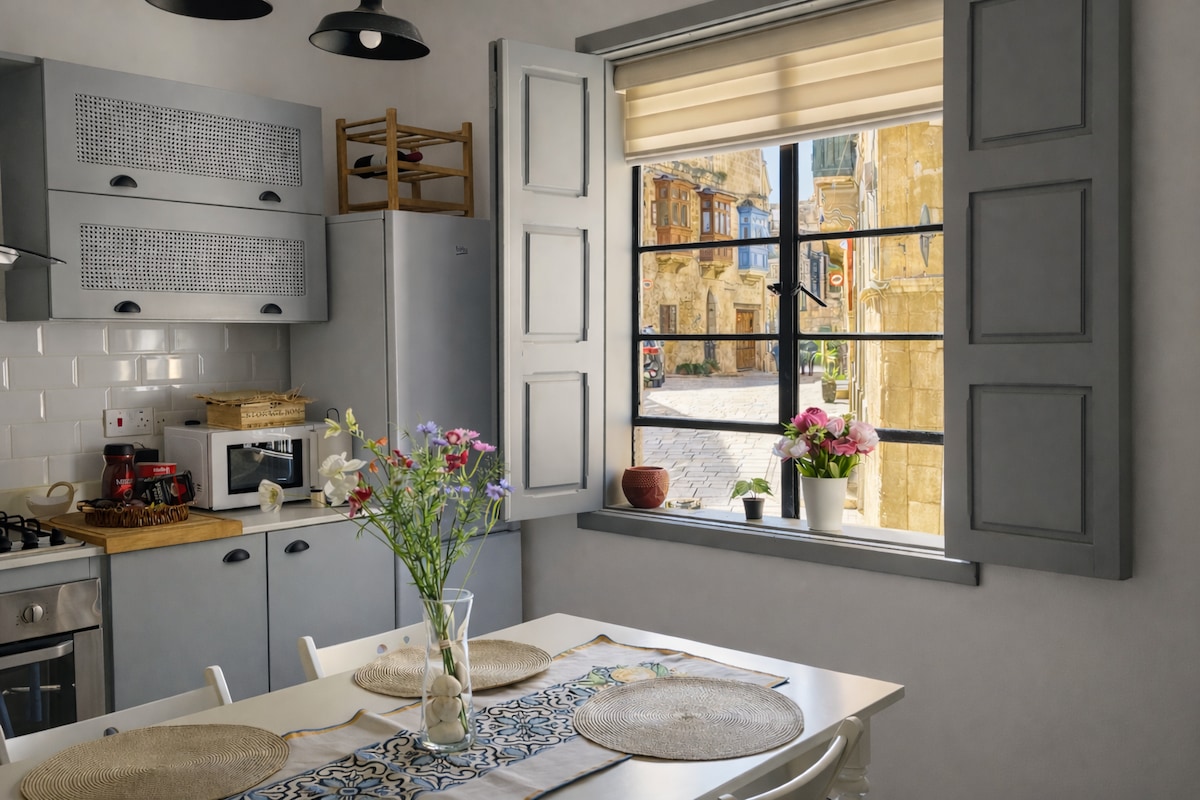 This traditional Maltese maisonette is located in a quiet neighborhood just 10 minutes walk from the capital city Valletta and 5 minutes walk from Valletta Waterfront and ferry. A fully refurbished apartment with a private entrance and original features such as the traditional Maltese balcony, tiles and spiral narrow staircase Garigor, enjoys the use of a private roof terrace with gorgeous views of the Grand Harbour.