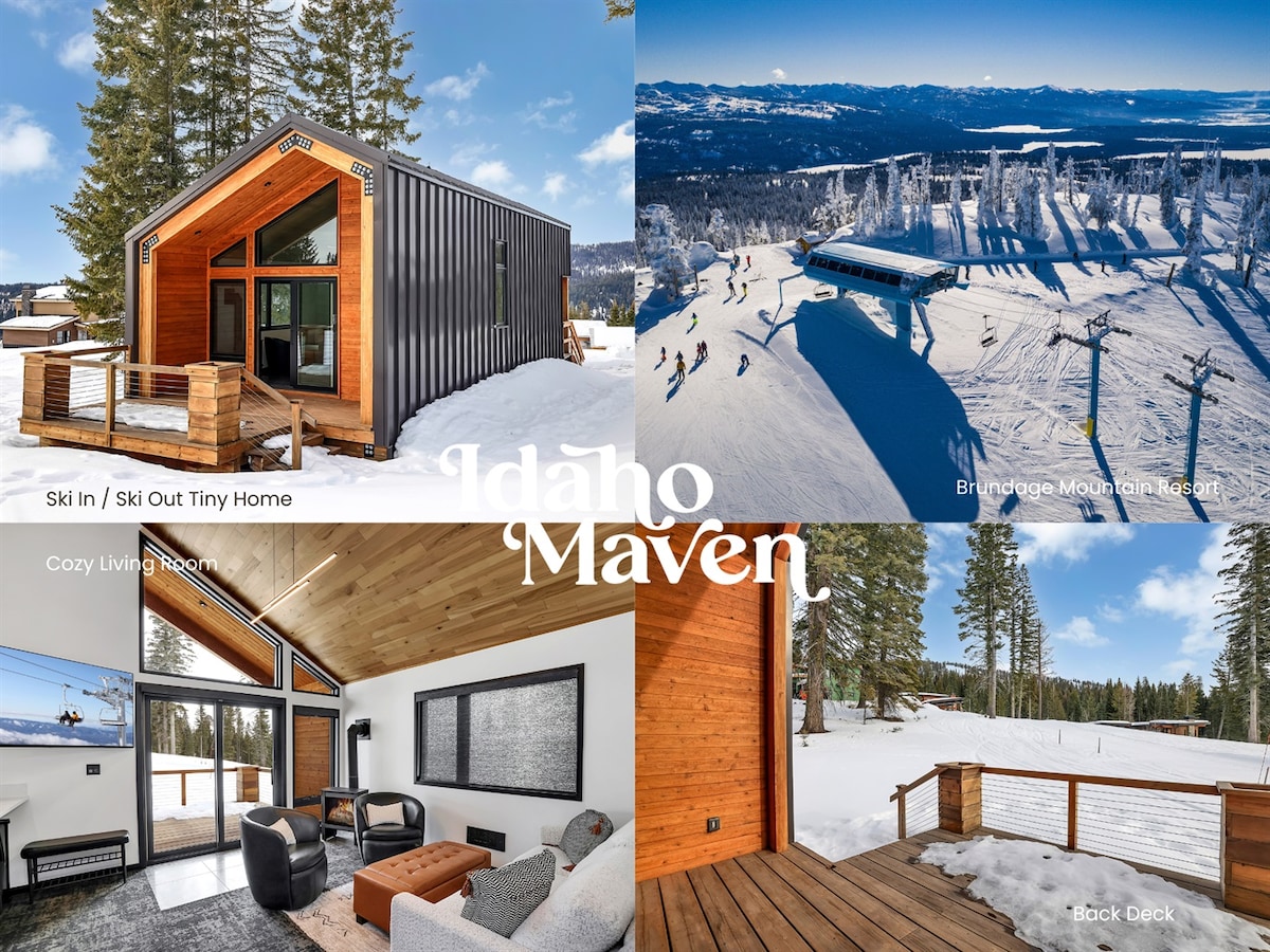 Wake up slopeside at Brundage Mountain in the only true ski-in/ski-out tiny home, where first tracks are just steps from the door. Inside, enjoy a thoughtfully designed space with flexible sleeping for groups, a comfortable living area, one full bathroom, and everything you need to relax after a day on the slopes. Whether you’re chasing powder or quiet mountain mornings, welcome to your Brundage home away from home.