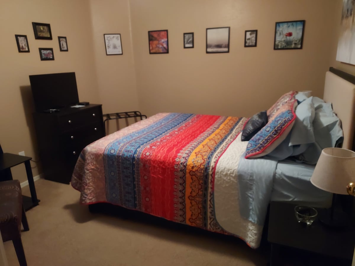 A little out of the way, not too much. Located between Phoenix and Tucson. A cozy studio apartment with a boho feel. A fully stocked kitchen awaits our guests. A complimentary coffee spot for that first morning necessity. A queen size memory foam mattress in the bedroom. A futon for children. A pack-n-play for toddlers or infants. Sanitized for your peace of mind. A perfect and convenient getaway surrounded by our beautiful desert.