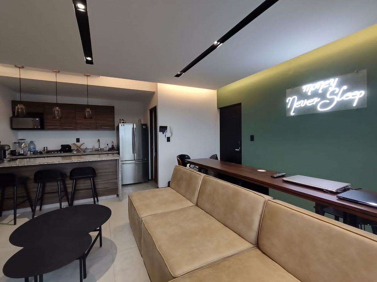 Departamento amueblado de lujo. 1 recámara, área de lavado, cocina equipada, terraza a escasos metros de la alberca, cuentas con 1 cajón de estacionamiento, acceso directo a la plaza comercial ( Real Center ) con restaurantes, bares, Cinépolis, Starbucks, lavandería, papelería, Sams. Acceso al gym, alberca, salón de juegos y seguridad 24/7 Podemos facturar si lo requieren.