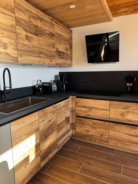 Appartement de montagne chaleureux pour 4 à 6 personnes (55m2) situé au coeur de la station de ski Arc 1950. Entièrement rénové pour offrir un confort 5*. Sous les toits au 7ème étage, vous bénéficiez d'une vue exceptionnelle sur le Mont-Blanc et sur l'Aiguille Rouge (2 grands balcons). La cuisine est intégralement équipée (four, micro-onde, lave-vaisselle, plaques induction, machines à café filtre et Nespresso, bouilloire, grille-pain, appareil à raclette).