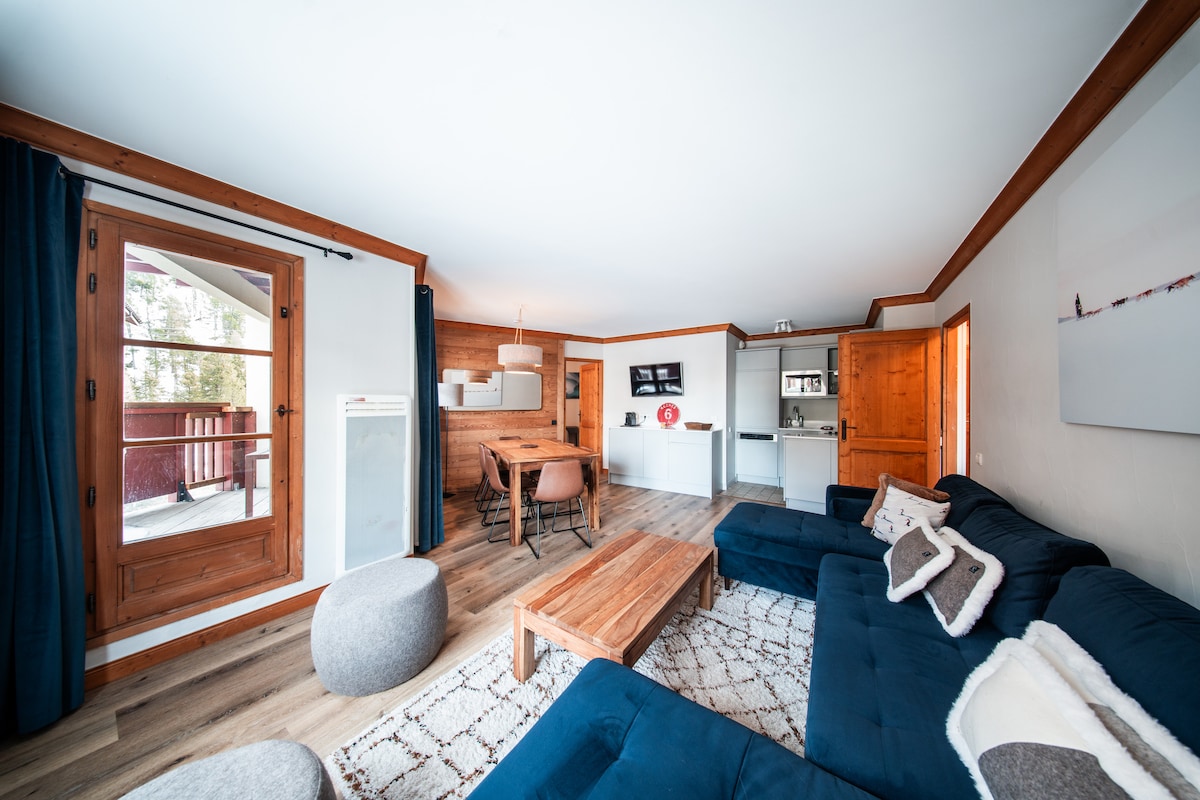 Appartement de montagne chaleureux pour 4 à 6 personnes (55m2) situé au coeur de la station de ski Arc 1950. Entièrement rénové pour offrir un confort 5*. Sous les toits au 7ème étage, vous bénéficiez d'une vue exceptionnelle sur le Mont-Blanc et sur l'Aiguille Rouge (2 grands balcons). La cuisine est intégralement équipée (four, micro-onde, lave-vaisselle, plaques induction, machines à café filtre et Nespresso, bouilloire, grille-pain, appareil à raclette).