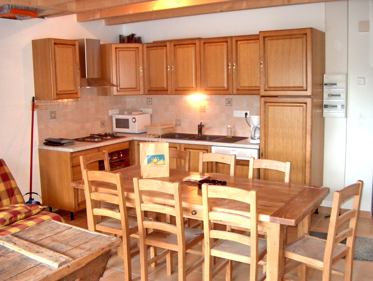 Situé aux portes du Parc National des Ecrins, à 800 mètres du télécabine permettant l'accès à la station des 2 Alpes. Maison rénovée sur terrain de 700m²,grande terrasse aménagée, exposée sud. Cuisine entierement équipée ( four, lave-vaisselle, micro-ondes...) ouverte sur belle pièce de vie (canapé convertible, TV), sdb avec douche, wc séparé, 1ère chambre avec lit double et placard, 2ème chambre avec lit superposé et lit simple ( placard). Location de linge de maison et forfait ménage possible