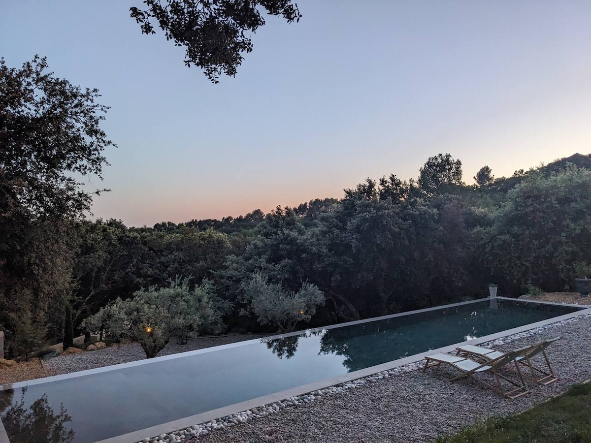 Your cozy getaway awaits in Saint Andre de Cruzieres at this luxury apartment. This gorgeous space features 1 bedroom with a luxurious king size bed, a modern bathroom with Italian shower, fully equipped kitchen and essential amenities like AC and heating, bathrobes, a washing machine, and a dining area. A hectare of garden is yours to wander, scattered with umbrella pines, cypress and olive trees. You can float in the pool (12x6) or hone in on the honesty bar in the pool house.