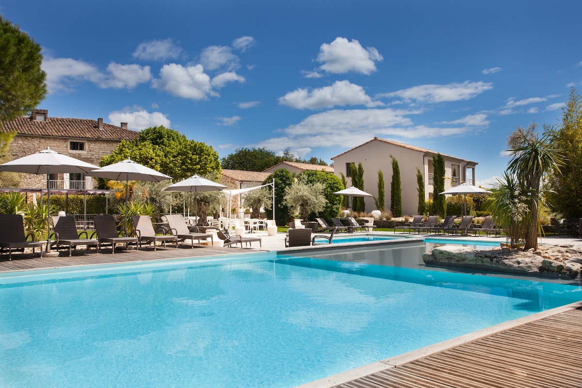 普罗旺斯风格的两卧室公寓,两张床,共用水疗和露台