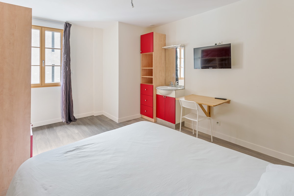 Ravissant T1 bis en hyper centre. Localisation idéale, restaurants, théâtre, cinémas, commerces, musées, tout est au pied de l’appartement. L’appartement est situé au 3ème Etage d’un bel immeuble XIXème. L’escalier en granit est large. La rue Jean Jacques est une rue piétonne très animée, mais l’atout de notre appartement, est qu'il donne sur une cour privée très tranquille sécurisée par 2 portes fermées . Des racks à vélo sont prévus (dans la limite de 2) ils seront donc en sécurité.