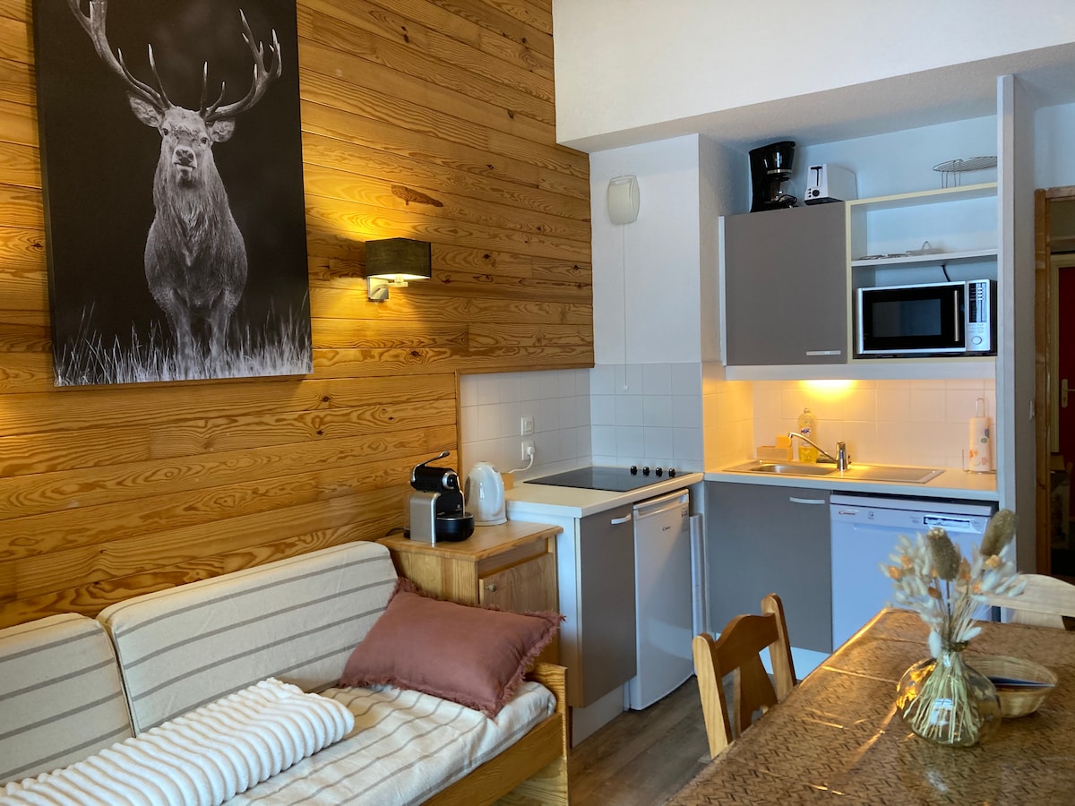 Appartement entièrement rénové dans un style chalet montagne, alliant charme et confort avec des matériaux de qualité Prévu pour accueillir 4 personnes (jusqu’à 6 sur demande), il a été soigneusement pensé pour offrir tout le nécessaire et se sentir comme chez vous durant vos vacances, été comme hiver Toutes les commodités sont au pied de l’immeuble : pistes de ski, commerces, restaurants... Piscine extérieure accessible en saison estivale Profitez d’un balcon spacieux et d’un local à ski