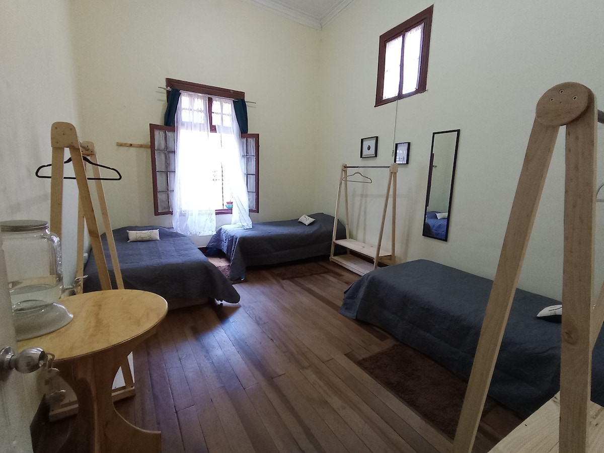 La habitación está en un hermoso hostel, con ubicación perfecta en el Cerro Alegre: a 100 mts de 4 miradores, a 200 mts de restaurantes y bares, supermercado, bancos, casas de cambio y ATM. Tenemos una cervecería artesanal y cafetería, recepción bilingüe 24/7, 10 baños compartidos, desayuno buffet con waffles caseros (costo extra), cocina, lavandería y guarda equipaje. Cuenta con 1 cama doble o 1 cama doble y 1 litera, calefacción, armario, escritorio, TV cable y toallas para cada cama.