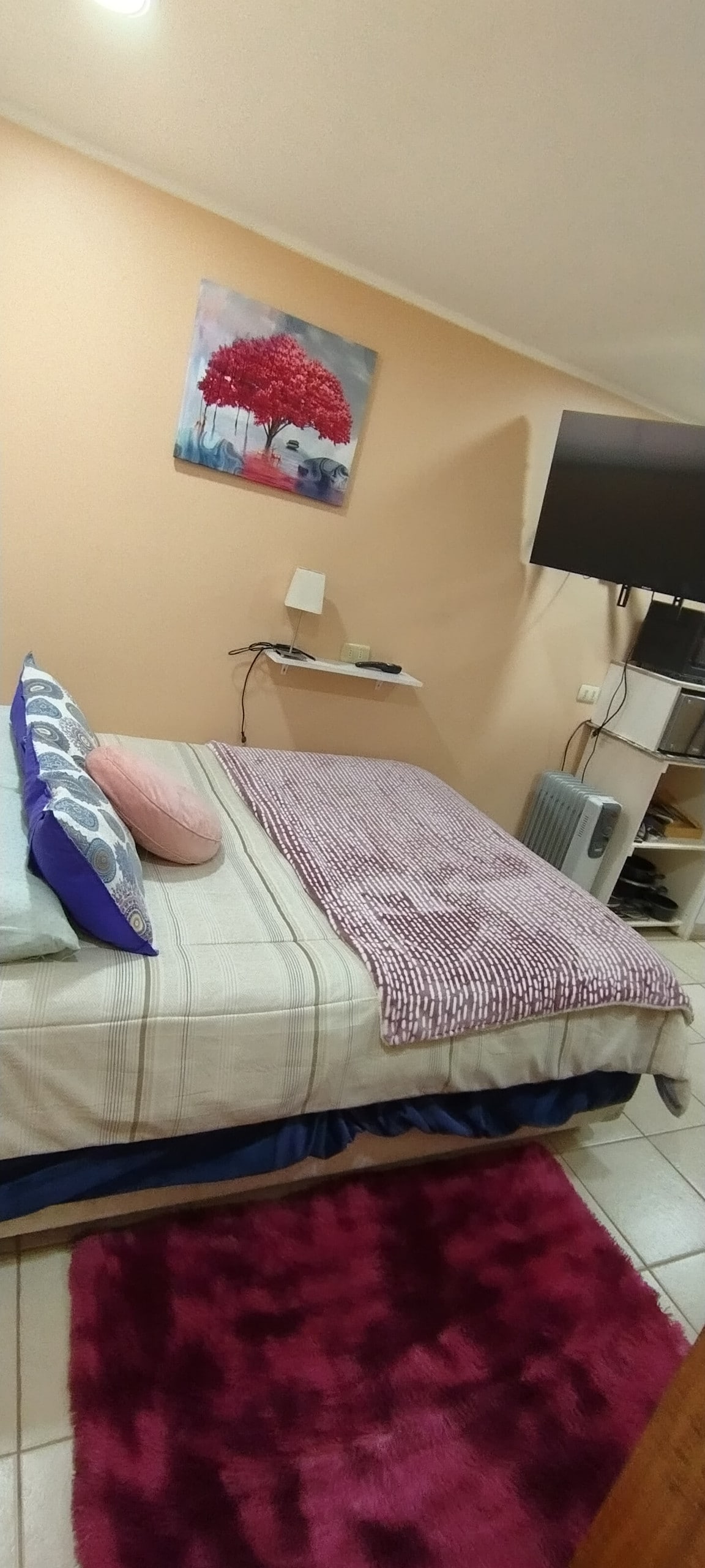 Habitación con cama matrimonial, baño privado y cocina privada, ventana con luz solar, wifi y agua caliente. Supermercados y locomoción muy cerca. Estacionamiento afuera de la propiedad. IMPORTANTE: por seguridad, NO se aceptan personas fuera de las indicadas al momento de la reserva, o diferentes de las que ingresaron el primer día.