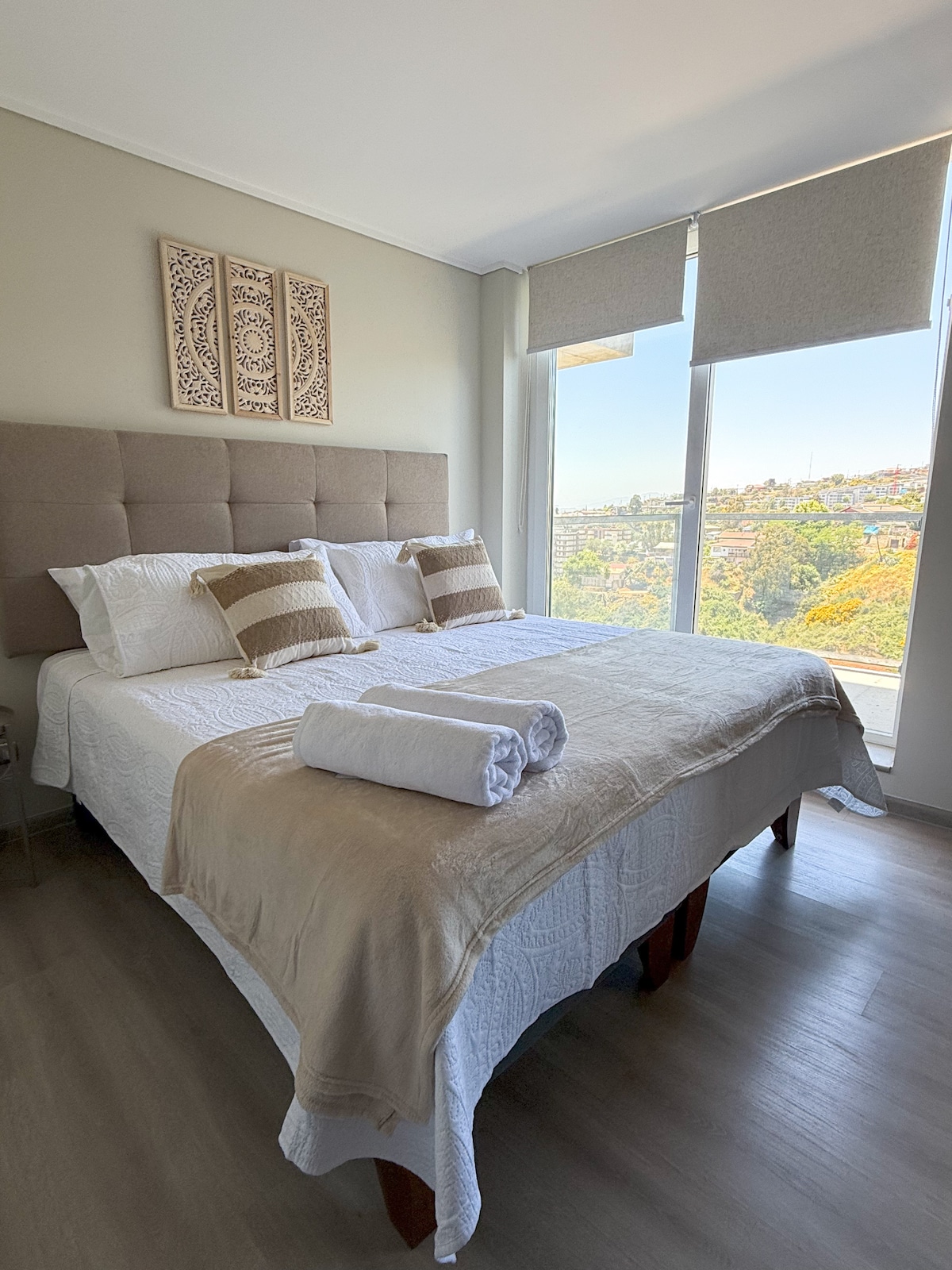 Edificio ON - Lofts & Suites Departamento ubicado en el privilegiado sector de Reñaca en Viña del Mar, con instalaciones y equipamiento diseñados para disfrutar de todas las comodidades. Excelente vista al mar. Apto para estadías de larga duración. Consulte también por estadías por día (ejemplo desde las 9 am hasta las 22 pm). Check in y check out flexibles para fines de semana, dependiendo de la disponibilidad.