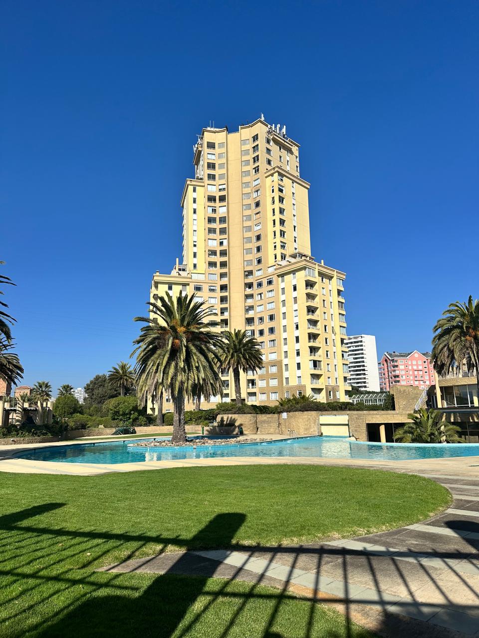 El departamento es moderno ubicado en un piso alto por lo cual tiene una espectacular vista. El transporte público esta a pasos de la calle principal 1 norte y camino troncal, centro de la ciudad, supermercados y Universidades. (U Federico Sta Maria & Sto Tomas). El barrio es tranquilo, ideal para parejas, con balcón y piscina privada. Depto sin calefacción. Distancias: ■ 15 - 20 minutos caminando aprox. de super JUMBO. ■ 15 min de la playa y casino en vehiculo. ■ Estacionamiento techado.