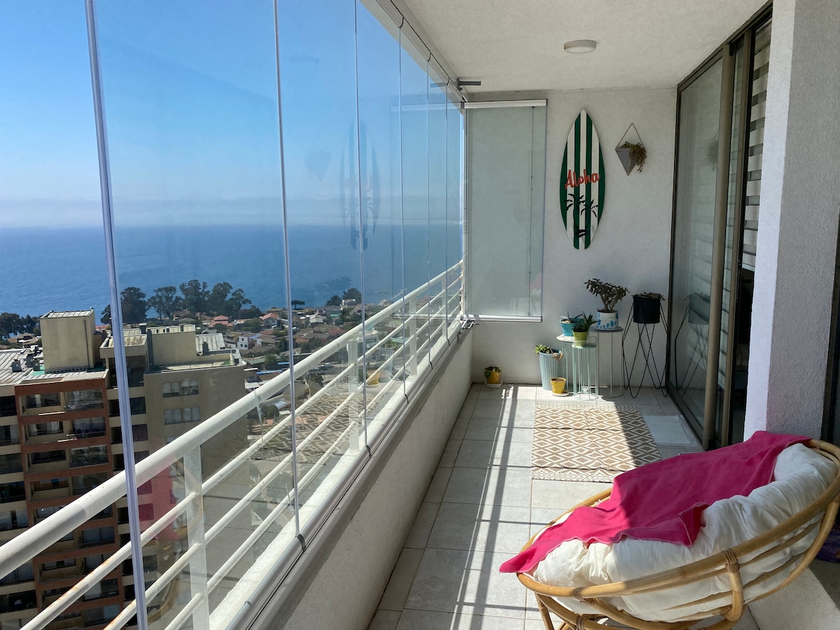 Disfruta de una experiencia con estilo en este alojamiento céntrico. Acogedor y equipado. A pasos del strip Center (bar, restoranes, market, entre otros), las dunas, jumbo supermercado, plazas y ferias, restoranes más famosos de concon y playas. Departamento y hogar el cuál busca que se sientas en casa como también lo es para mí. En busca de gente ordenada que quiera tener una grata experiencia junto con sus seres queridos en un lindo lugar.