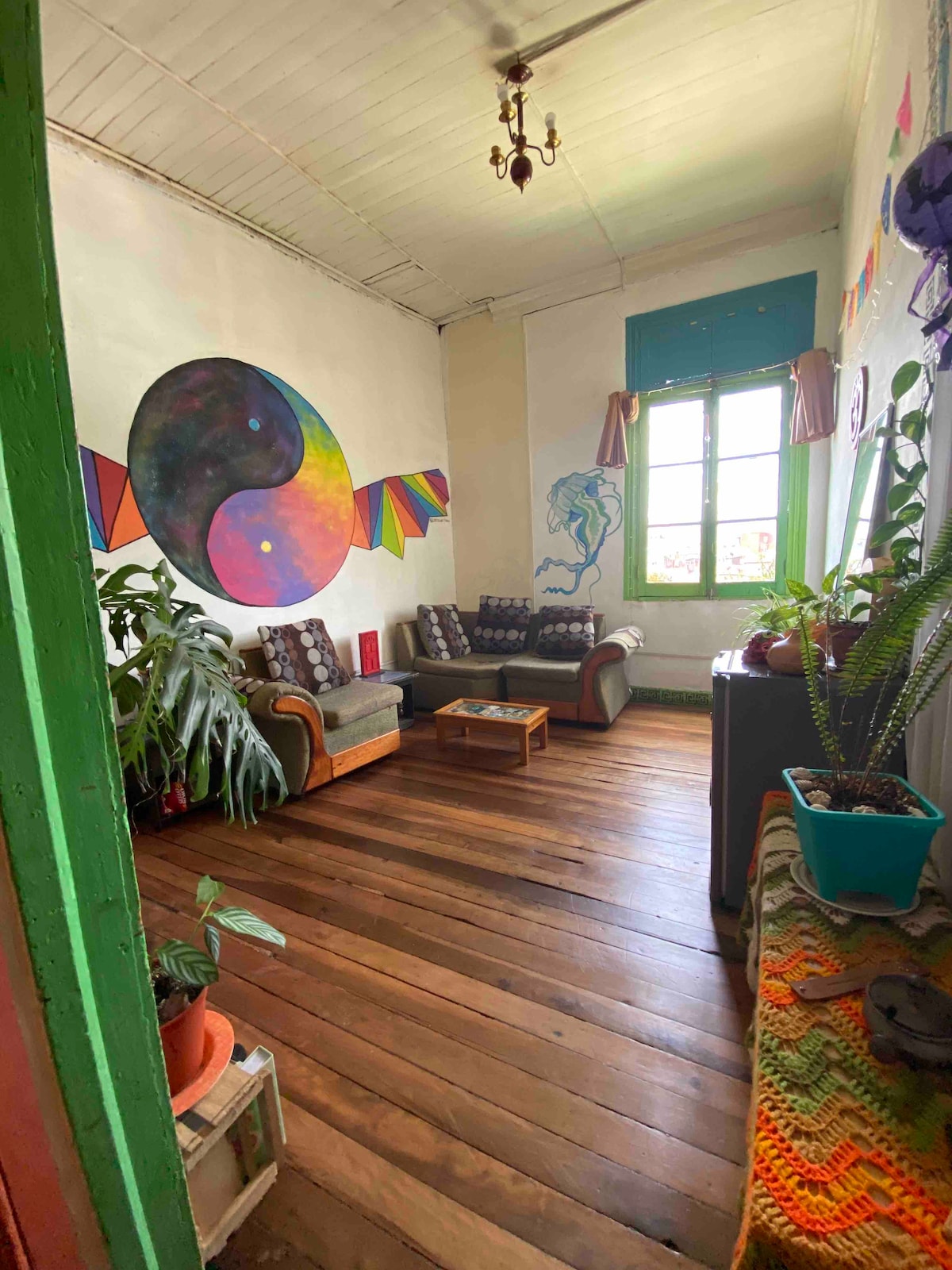 Habitación individual , tiene una ventana pequeña , y es un altillo esto quiere decir que la cama está arriba y abajo tenemos un espacio donde encontrarán un escritorio y un mueble para dejar la ropa Casa multicultural , cocina equipada y estamos muy cerca del centro, dos baños y una pequeña terraza donde llega el sol en la mañana , vivimos en armonía y compañerismo , sean todos bienvenidos a" la casa de los colores "