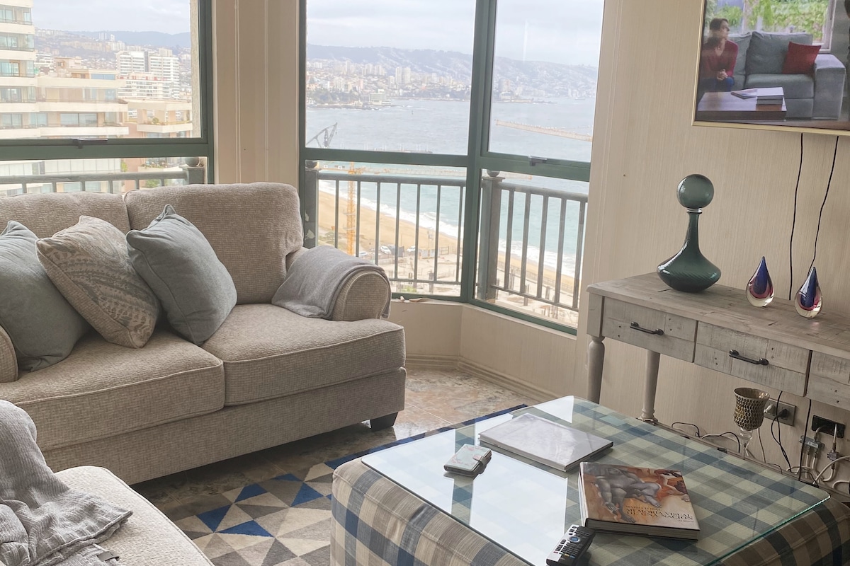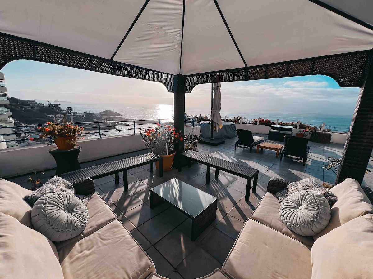 Espectacular departamento en Concón con vista al mar y piscina temperada. El departamento cuenta con áreas verdes y juegos infantiles, piscina al aire libre, amplia terraza privada con vista al Océano Pacífico. Hay servicio de sauna (de pago). Se encuentra a pocos pasos de las Dunas de Concón, supermercados, restaurantes, bares y del parque Costa de Montemar. A minutos caminando a playa Los Lilenes. Se cuenta con Wifi y Smart TV en el dormitorio, estacionamiento privado.