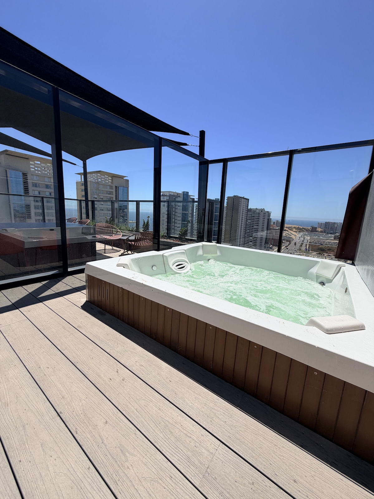 ¡Espacio relajante y elegante con terraza excepcional! Disfruta del invierno sin frío y vistas impresionantes. Cerca de hermosas playas y a minutos de las dunas de Concón. Ingreso independiente a través de cerradura inteligente. Comodidades de TV e internet. Edificio con coworking panorámico y agradables espacios para tu máxima comodidad. Estacionamiento incluido. Ambiente tranquilo para descansar. ¡No pierdas esta oportunidad! Contáctanos para más información.