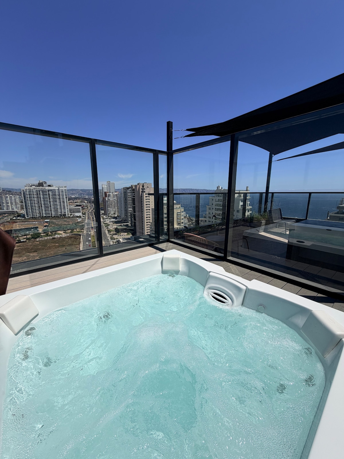 Puedes conocer playas, Casino, quinta vergara ,restaurantes con gastronomía de primer nivel, sector tranquilo y seguro para caminar con la familia, vida nocturna y espacios para pasear mascotas y realizar deportes a la orilla del mar. Cocina equipada con horno, microondas, refrigerador, lavadora, TV 55', bañera bebé, cortinas sunscreen y blackout, terraza cerrada con protección para niños, baño con shower door, WIFI incluido cama 2 plazas y futón de 170x84 muy cómodo