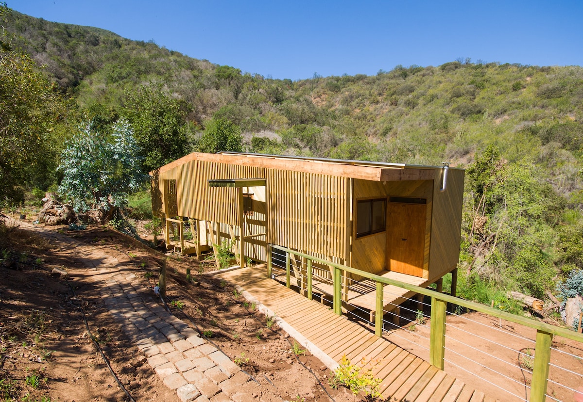 Un refugio con espectacular vista al bosque nativo, gran terraza. Disfruta la exquisita piscina temperada con tranquilidad y descanso en contacto con la naturaleza. Despierta con el aroma de un rico desayuno en un espacio privado, no compartido. Por ruta f832, camino Algarrobo norte, 2Km playa Las Cadenas e Internacional, 8 min. de restaurantes, pizzerías, bares. Check in y out flexible. Tinaja se paga en el lugar $70.000 La tiny está dentro de una parcela donde vivo con mis perritos y gatos.