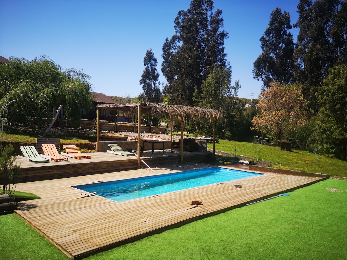 Agradable cabaña con píscina y espacioso quincho.