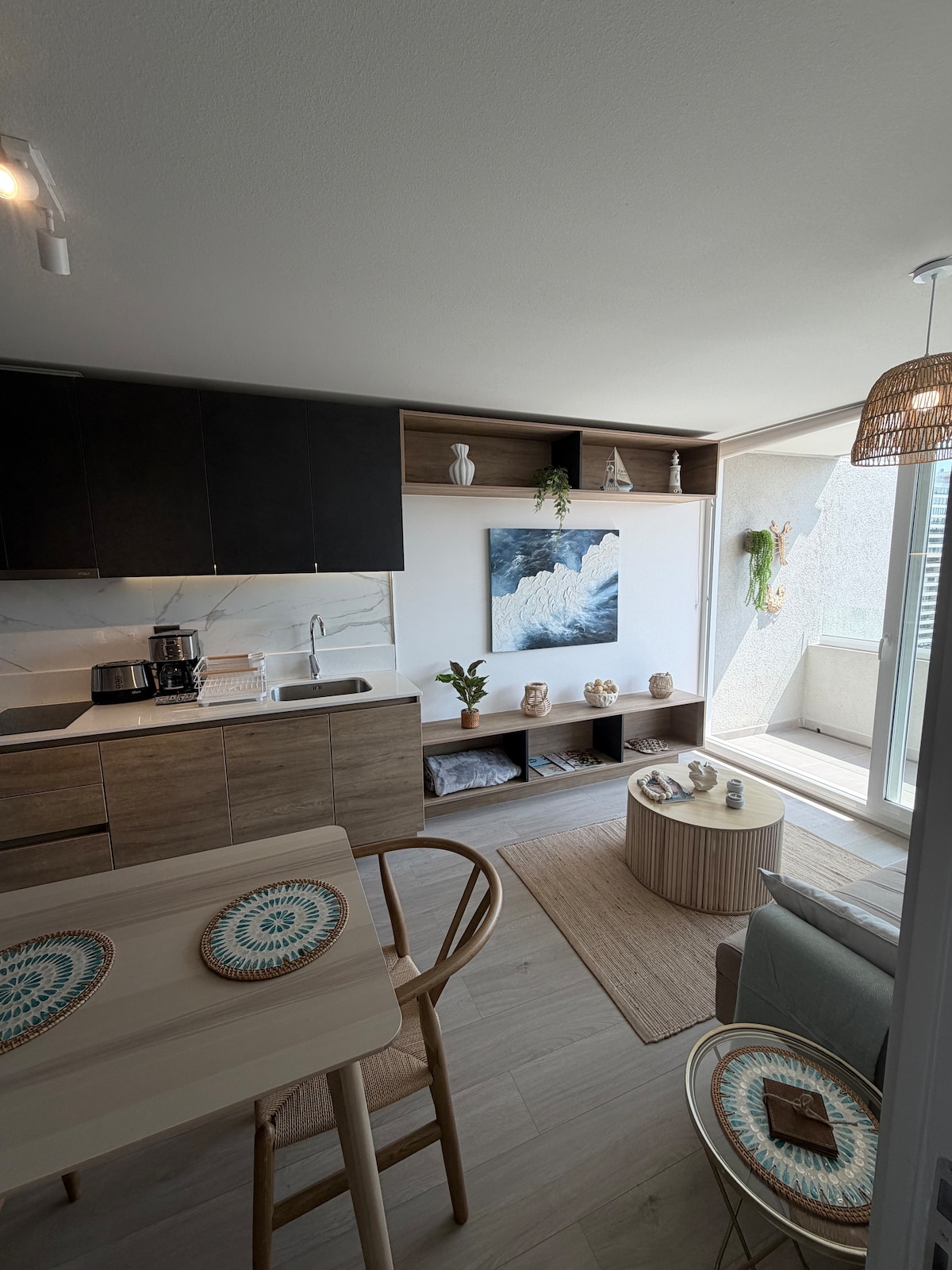 🌊 Enjoy a brand new, modern apartment in the exclusive Costa de Montemar neighborhood. Just steps from the dunes with an ocean view on the 16th floor for an incredible sight ☀️ 🐚 You’ll find a warm atmosphere, decorated for a privileged relaxing experience, fully equipped and with self check-in. 🏠 The Building: Access to excellent common areas: Pool, game room, Kids Zone, Gym, BBQ area, Gourmet Lounge, PlayStation 5, and more. Don’t hesitate to contact me with any questions!