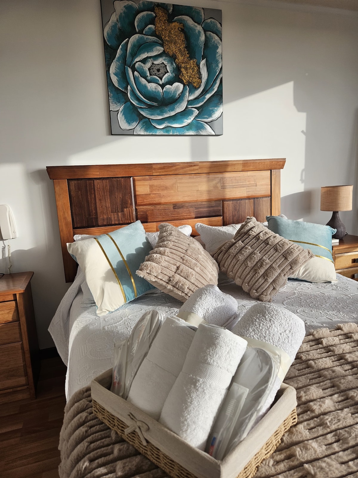 Disfruta de la sencillez de este alojamiento tranquilo y céntrico. Cada rincón está decorado con mucho amor y dedicación para que puedan disfrutar de esta estadia . El condominio es grande cuenta con ciclovías , muchas áreas verdes , piscinas , Quinchos , cine , multi cancha, gimnasio y juegos para los pequeños . Esta ubicado a 2 min. del mcdonals A 5 min del supermercado acuenta y tottus a 7 min del unimarc e lider. 10 min. en auto de la playa y mall. Locomoción a una cuadra. No te arrepentirás