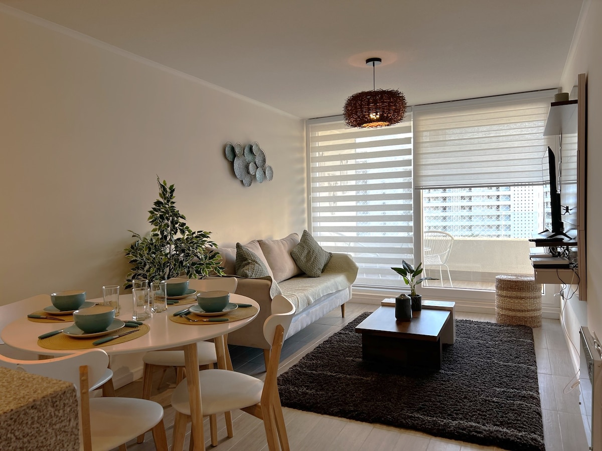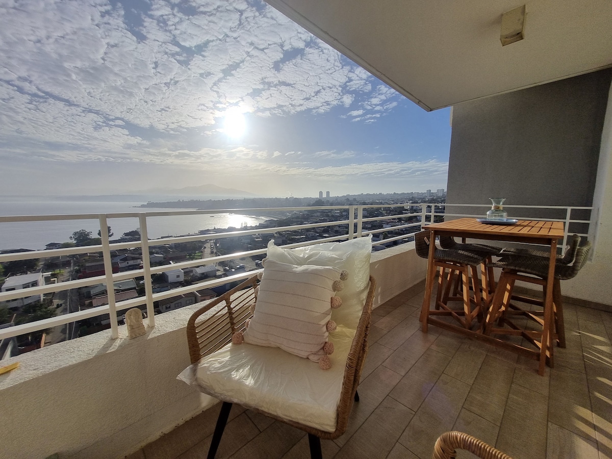 Despierta con una vista al mar completamente despejada — real y panorámica. Terraza amplia ideal para desayunos, sunset o home office. Departamento moderno de 1 dormitorio en una de las mejores zonas de Concón, a minutos de playa, gastronomía y supermercados. Perfecto para parejas que buscan descanso, viajeros que quieren teletrabajar con vista o quienes quieren disfrutar el verano a pasos del mar. estacionamiento privado subterráneo -Wifi rapido- 100% Petfliendly- a 7 min caminando de las Dunas