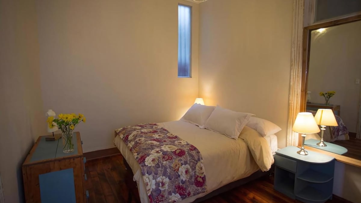 We are located strategically in Cerro Alegre, our house was declared a World Heritage Site. Spacious and bright room of 215 ft2, it has two French-style balconies and views of the main street, a double bed, large bunk bed, nightstands, heater, table and chairs. The bathrooms are shared, but you can request a private external bathroom for an extra charge (subject to availability). Can be used as a double, or using 2 bunk beds. If you are 3 or 4 people you have to add people to the reservation.