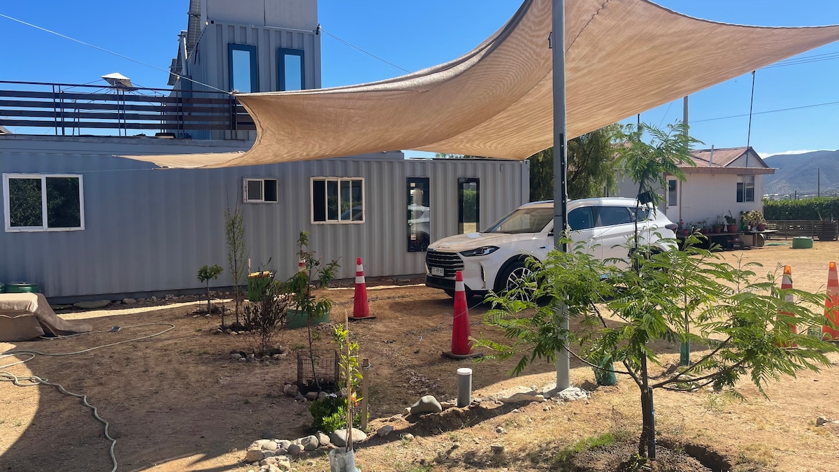 Casa Container Algarrobo es un lugar para ir a disfrutar con tu pareja, la familia o un grupo de amigos en una tranquila parcela, rodeada de la naturaleza, con una relajante tinaja de agua caliente y con mucho espacio para disfrutar. El terreno cuenta con 5.700 m2 para que aproveches con tu grupo, pasen tiempo al aire libre y disfruten de la naturaleza. Ubicado a 10 minutos en vehículo de la playa de Algarrobo donde podrás encontrar una gran variedad de servicios turísticos y gastronómicos.