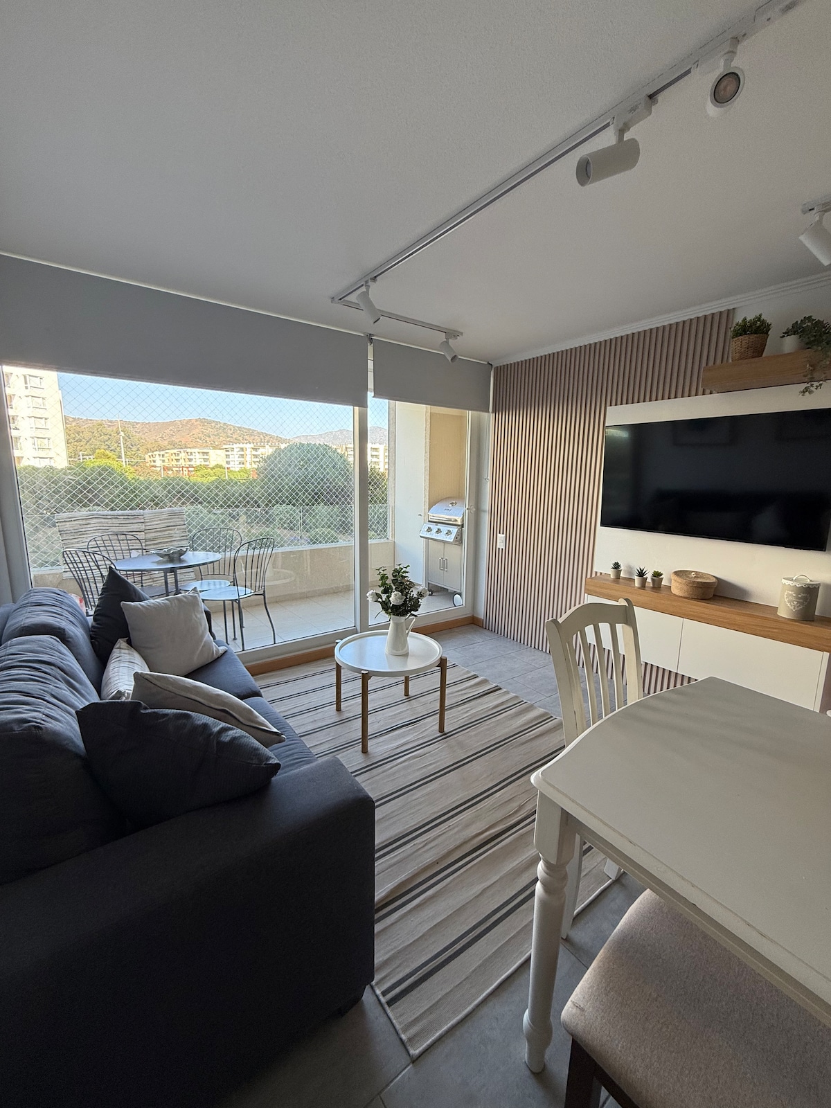 Inmejorable ubicación, disfruta de la brisa marina a sólo 3 cuadras de la playa. Céntrico y Cómodo departamento en el corazón de Reñaca, tendrás todo lo que necesitas a pocos pasos: restaurantes, tiendas, y vida nocturna. Completamente equipado para 3 personas; cama de 2 plazas más futón, ropa de cama, hermoso y seguro condominio con piscina y gimnasio. incluye estacionamiento subterráneo. Arriendo mínimo por 2 noches. Cuota única de aseo 30.000. check in 15:00, check out 12:00.